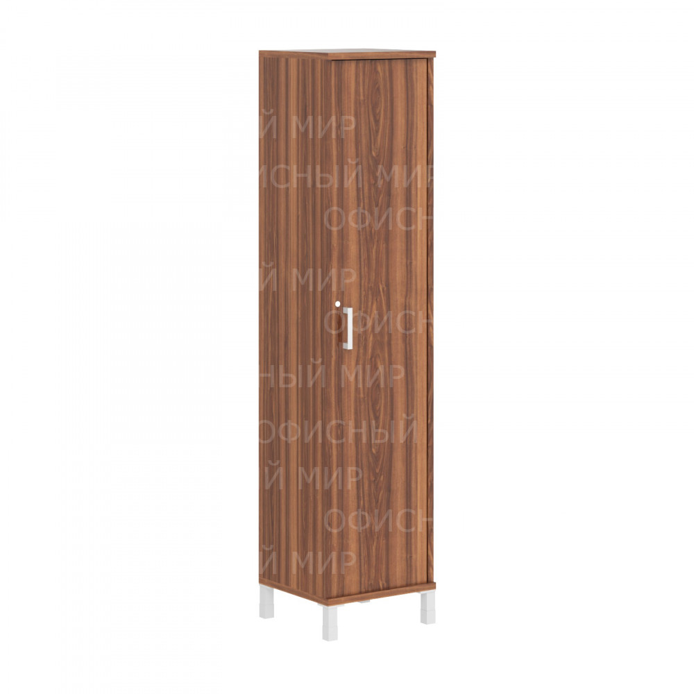 Универсальный высокий шкаф с замком BORN для офисного или домашнего использования. Размеры - 475х2054х450 мм, цвет - Орех Даллас. Шкаф имеет опоры увеличенной длины. Оснащен 5 полками, которые закрыты дверцей из ЛДСП под цвет конструкции. На дверце установлена стильная металлическая ручка и замок для безопасности. Конструкция шкафа оснащена прочными силовыми креплениями – эксцентриковыми стяжками. Все торцы основных элементов шкафа надежно защищены кромкой ПВХ – 2 мм. Регулируемые по высоте опоры обеспечат шкафу устойчивость на неровном полу.