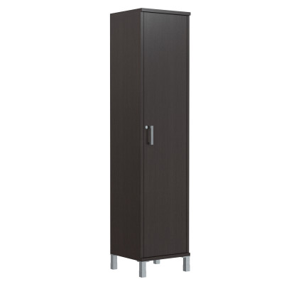 Универсальный высокий шкаф с замком BORN для офисного или домашнего использования. Размеры - 475х2054х450 мм, цвет - Венге Магия. Шкаф имеет опоры увеличенной длины. Оснащен 5 полками, которые закрыты дверцей из ЛДСП под цвет конструкции. На дверце установлена стильная металлическая ручка и замок для безопасности. Конструкция шкафа оснащена прочными силовыми креплениями – эксцентриковыми стяжками. Все торцы основных элементов шкафа надежно защищены кромкой ПВХ – 2 мм. Регулируемые по высоте опоры обеспечат шкафу устойчивость на неровном полу.