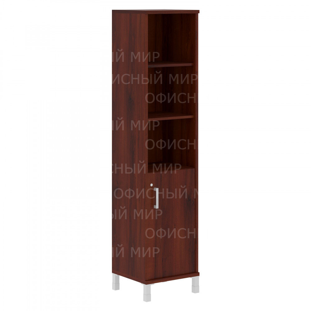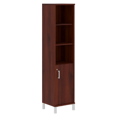 Универсальный шкаф-стеллаж с замком BORN для офисного или домашнего использования. Размеры - 475х2054х450 мм, цвет - Бургунди. Шкаф оснащен 5 полками, две нижние закрыты дверцей из ЛДСП под цвет конструкции, три верхние – открытые. На дверце установлена стильная металлическая ручка и замок для безопасности. Конструкция шкафа оснащена прочными силовыми креплениями – эксцентриковыми стяжками. Все торцы основных элементов шкафа надежно защищены кромкой ПВХ – 2 мм. Регулируемые по высоте опоры обеспечат шкафу устойчивость на неровном полу.