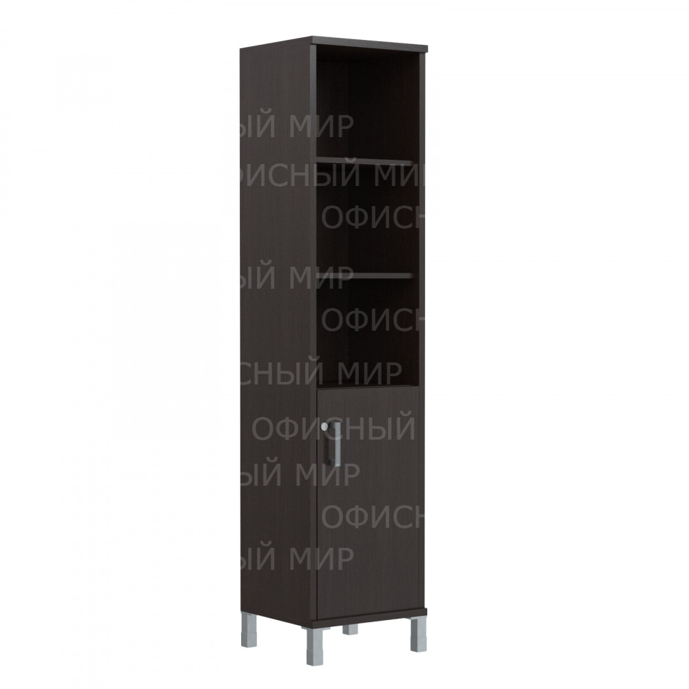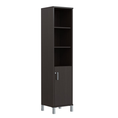 Универсальный шкаф-стеллаж с замком BORN для офисного или домашнего использования. Размеры - 475х2054х450 мм, цвет - Венге Магия. Шкаф имеет опоры увеличенной длины. Оснащен 5 полками, две нижние закрыты дверцей из ЛДСП под цвет конструкции, три верхние – открытые. На дверце установлена стильная металлическая ручка и замок для безопасности. Конструкция шкафа оснащена прочными силовыми креплениями – эксцентриковыми стяжками. Все торцы основных элементов шкафа надежно защищены кромкой ПВХ – 2 мм. Регулируемые по высоте опоры обеспечат шкафу устойчивость на неровном полу.