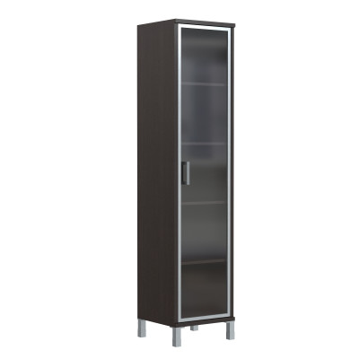 Универсальный высокий шкаф BORN для офисного или домашнего использования. Размеры - 475х2054х450 мм, цвет - Венге Магия. Шкаф имеет опоры увеличенной длины. Оснащен 5 полками, которые закрыты стеклянной дверцей с металлической рамкой по краям. На дверце установлена стильная металлическая ручка. Конструкция шкафа оснащена прочными силовыми креплениями – эксцентриковыми стяжками. Все торцы основных элементов шкафа надежно защищены кромкой ПВХ – 2 мм. Регулируемые по высоте опоры обеспечат шкафу устойчивость на неровном полу.