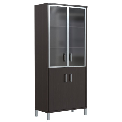 Широкий комбинированный шкаф BORN для офисного или домашнего использования. Размеры - 900х2054х450 мм, цвет - Венге Магия. Шкаф имеет опоры увеличенной длины. Двустворчатый шкаф оснащен 5 просторными полками, две нижние закрыты дверцами из ЛДСП под цвет конструкции, три верхние – стеклянными дверцами с металлической рамкой по краям. На всех дверцах установлены стильные металлические ручки. Конструкция шкафа оснащена прочными силовыми креплениями – эксцентриковыми стяжками. Все торцы основных элементов шкафа надежно защищены кромкой ПВХ – 2 мм. Регулируемые по высоте опоры обеспечат шкафу устойчивость на неровном полу.