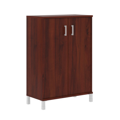 Широкий средний шкаф BORN для офисного или домашнего использования. Размеры - 900х1286х450 мм, цвет - Бургунди. Двустворчатый шкаф оснащенный 3 просторными полочками, которые закрываются дверцами из ЛДСП под цвет конструкции. На дверцах установлены стильные металлические ручки. Конструкция оснащена прочными силовыми креплениями – эксцентриковыми стяжками. Все торцы основных элементов надежно защищены кромкой ПВХ – 2 мм. Регулируемые по высоте опоры обеспечат шкафу устойчивость на неровном полу.