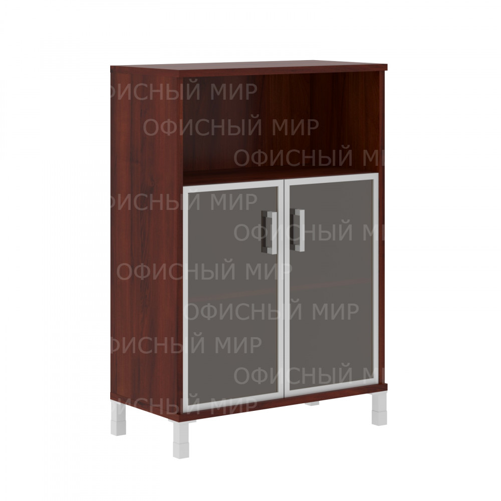 Универсальный средний шкаф с замком BORN для офисного или домашнего использования. Размеры - 900х1286х450 мм, цвет – Бургунди. Оснащен 3 просторными полочками, 2 нижние закрываются стеклянными дверцами с металлической рамкой, а верхняя - открытая. На дверцах установлены стильные металлические ручки и замок для безопасности. Шкаф имеет опоры увеличенной длины. Конструкция оснащена прочными силовыми креплениями – эксцентриковыми стяжками. Все торцы основных элементов шкафа надежно защищены кромкой ПВХ – 2 мм. Регулируемые по высоте опоры обеспечат шкафу устойчивость на неровном полу.