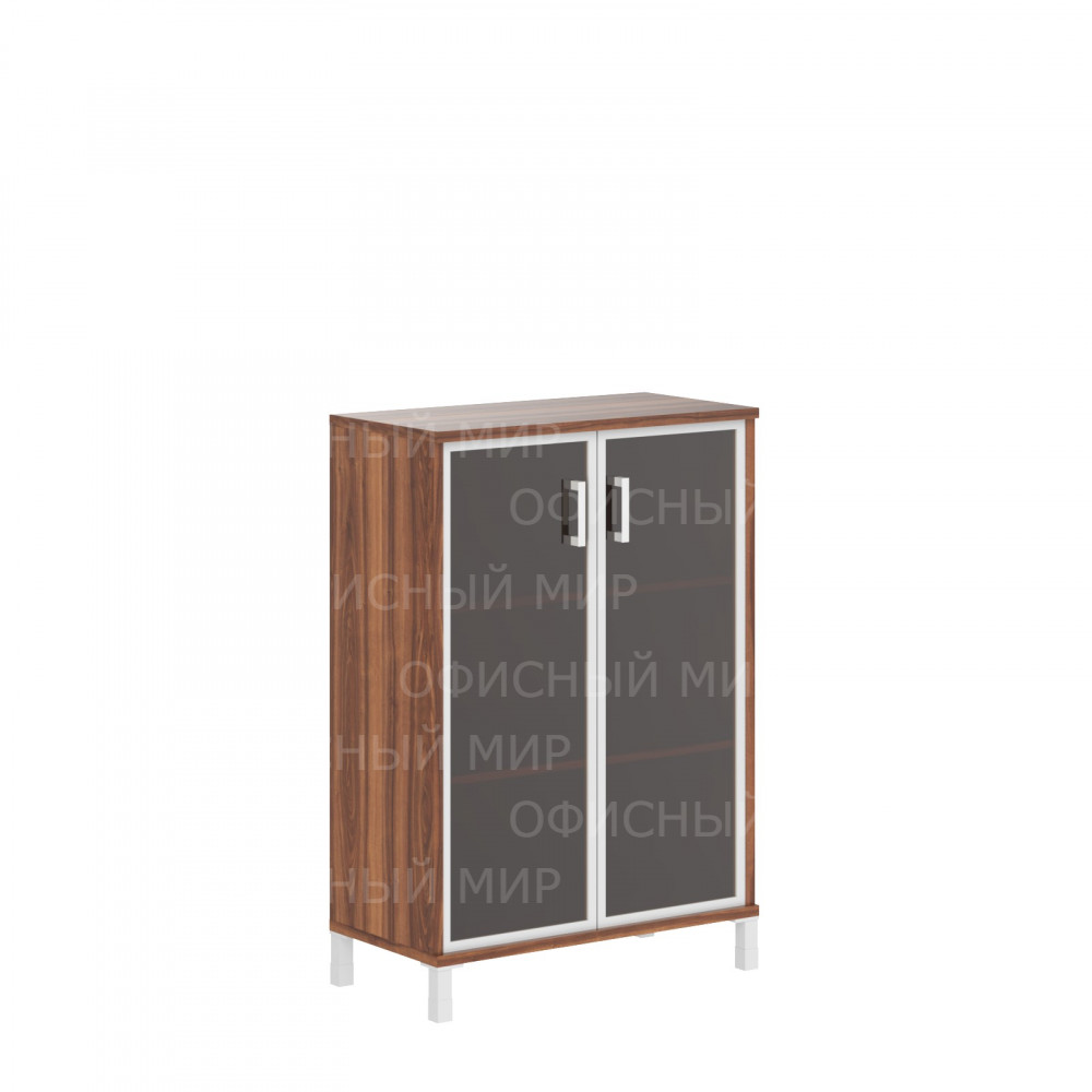 Широкий средний шкаф BORN для офисного или домашнего использования. Размеры - 900х1286х450 мм, цвет – Орех Даллас. Двустворчатый шкаф оснащен 3 просторными полочками, которые закрываются стеклянными дверцами с металлической рамкой по краям. На дверцах установлены стильные металлические ручки. Конструкция оснащена прочными силовыми креплениями – эксцентриковыми стяжками. Все торцы основных элементов надежно защищены кромкой ПВХ – 2 мм. Регулируемые по высоте опоры обеспечат шкафу устойчивость на неровном полу.