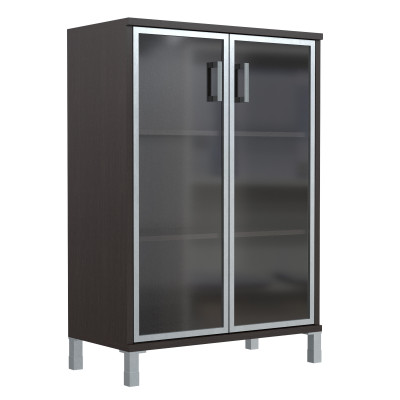 Шкаф средний со стеклянными дверьми в AL-рамке B 420.7 Венге Магия 900х450х1286 BORN