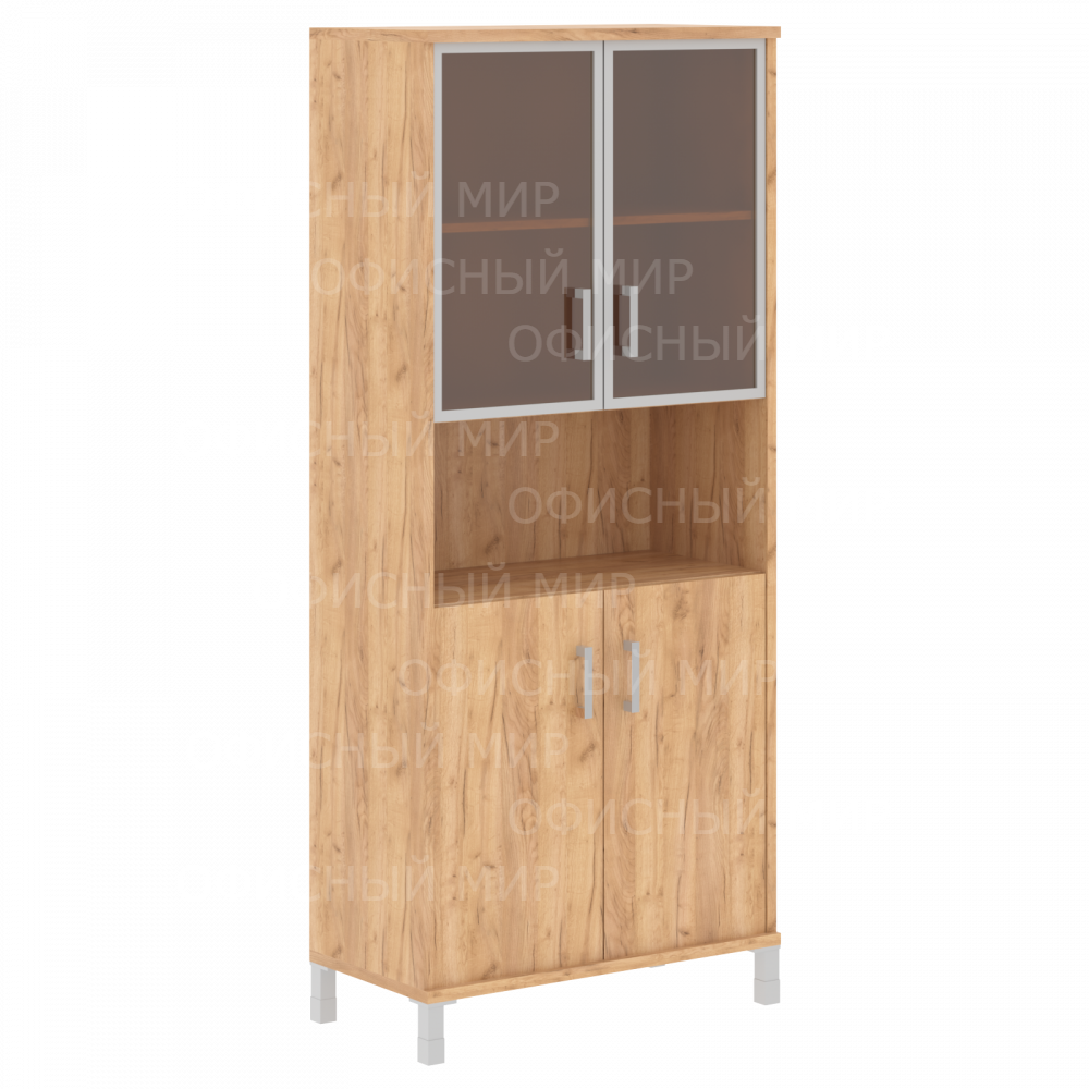 Шкаф высокий с малыми стеклянными дверьми в AL-рамке и глухими B 430.9 Дуб Бофорд