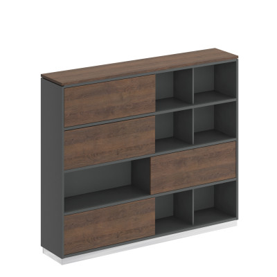• Каркас шкафа состоит из 2-х секций для документов с 3-мя фиксированными по высоте полками в каждой секции
