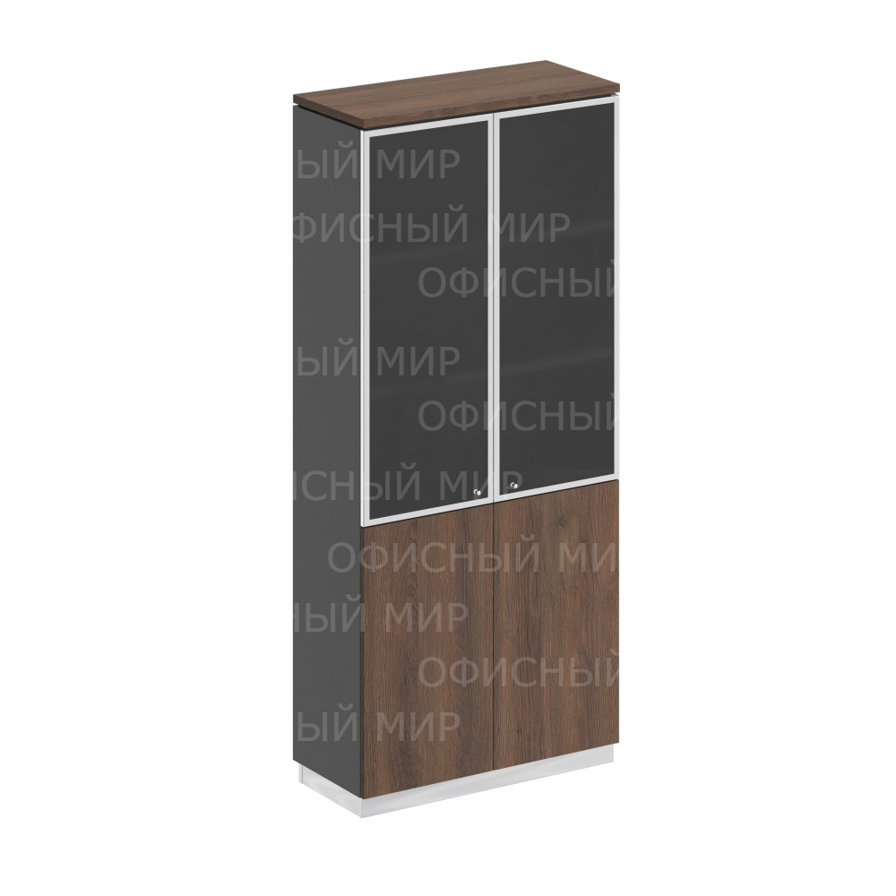 Шкаф для документов со стеклянными дверьми дуб гладстоун / антрацит премиум / дуб гладстоун СИ 308 ДГ АР ДГ/ХР