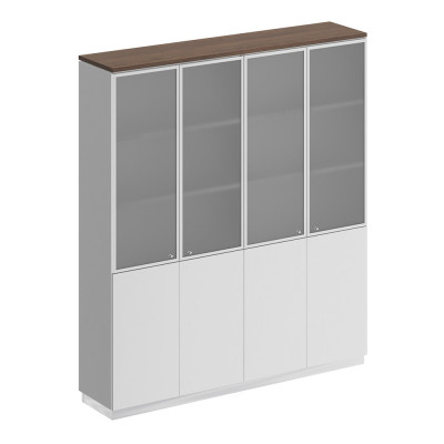 • Изделие является стенкой из двух шкафов для документов со стеклом под общим топом.