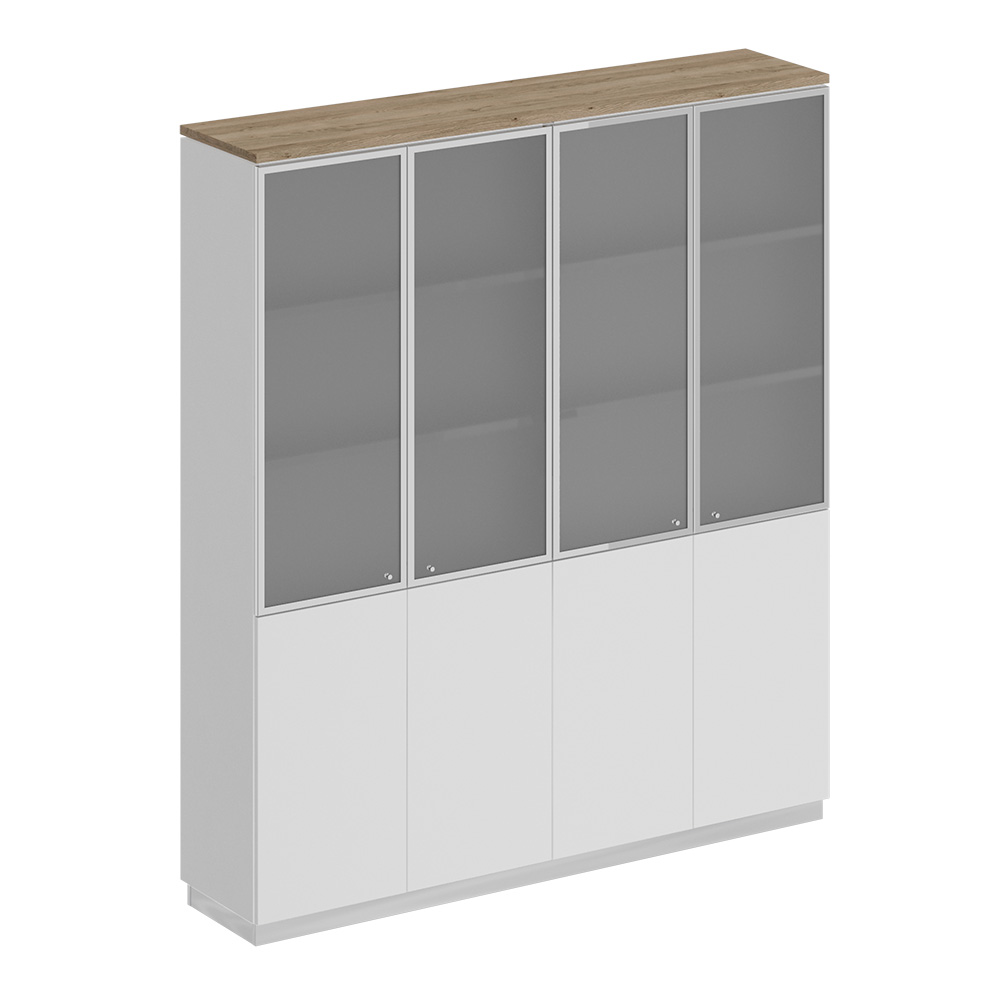 Шкаф для документов со стеклянными дверьми дуб гладстоун светлый / белый премиум / белый премиум СИ 315 ДС БП БП/ХР