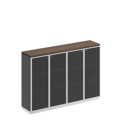 • Шкаф укомплектован четырьмя дверями со стеклом в металлической рамке без замка