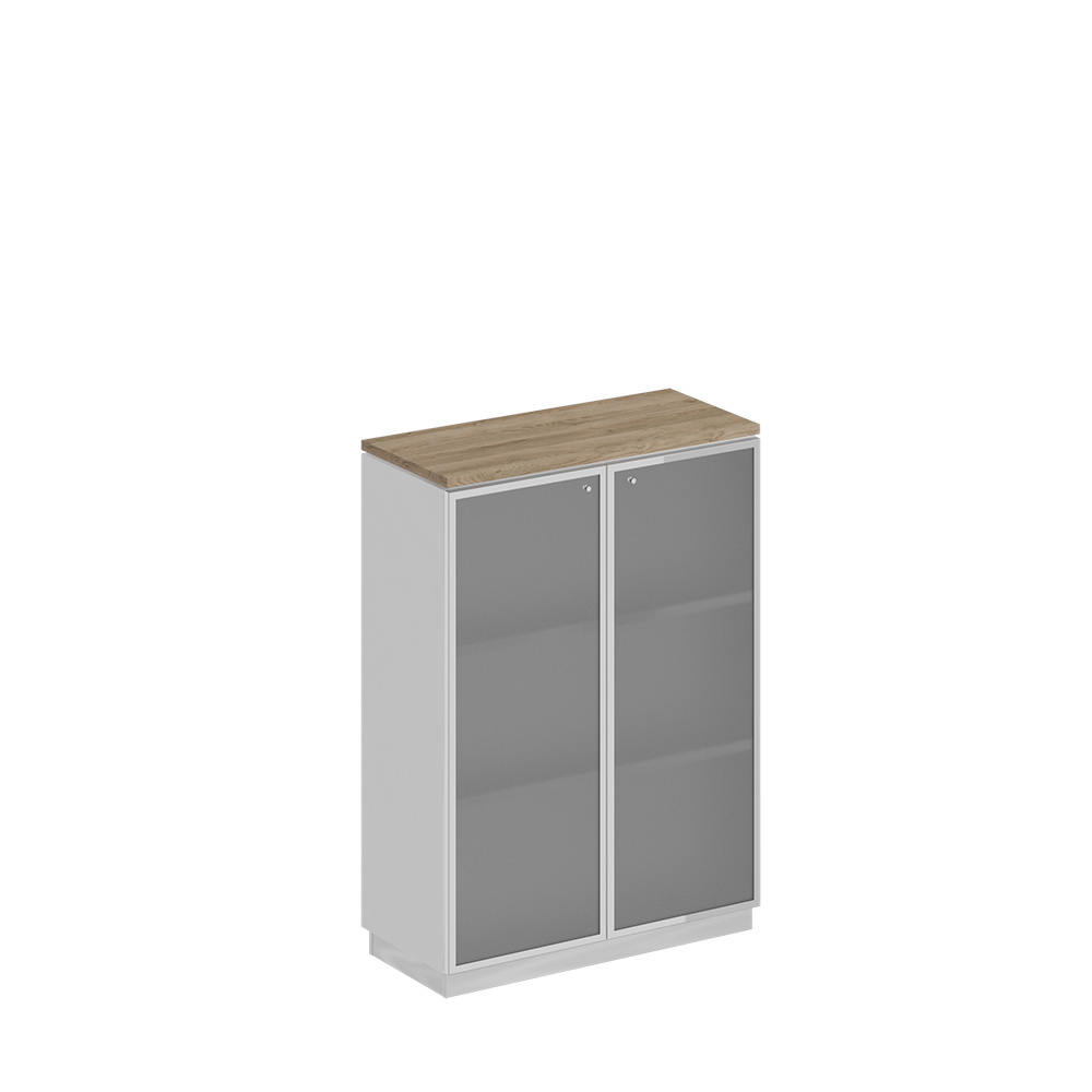 Шкаф для документов средний стекло в рамке дуб гладстоун светлый (столешница, фасад, топ) / белый премиум (корпус) СИ 319 ДС БП ХР