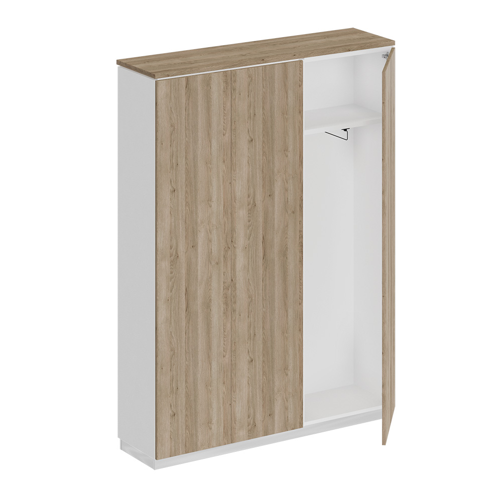 • Изделие является стенкой из закрытого шкафа для документов и узкого шкафа для одежды под общим топом.
