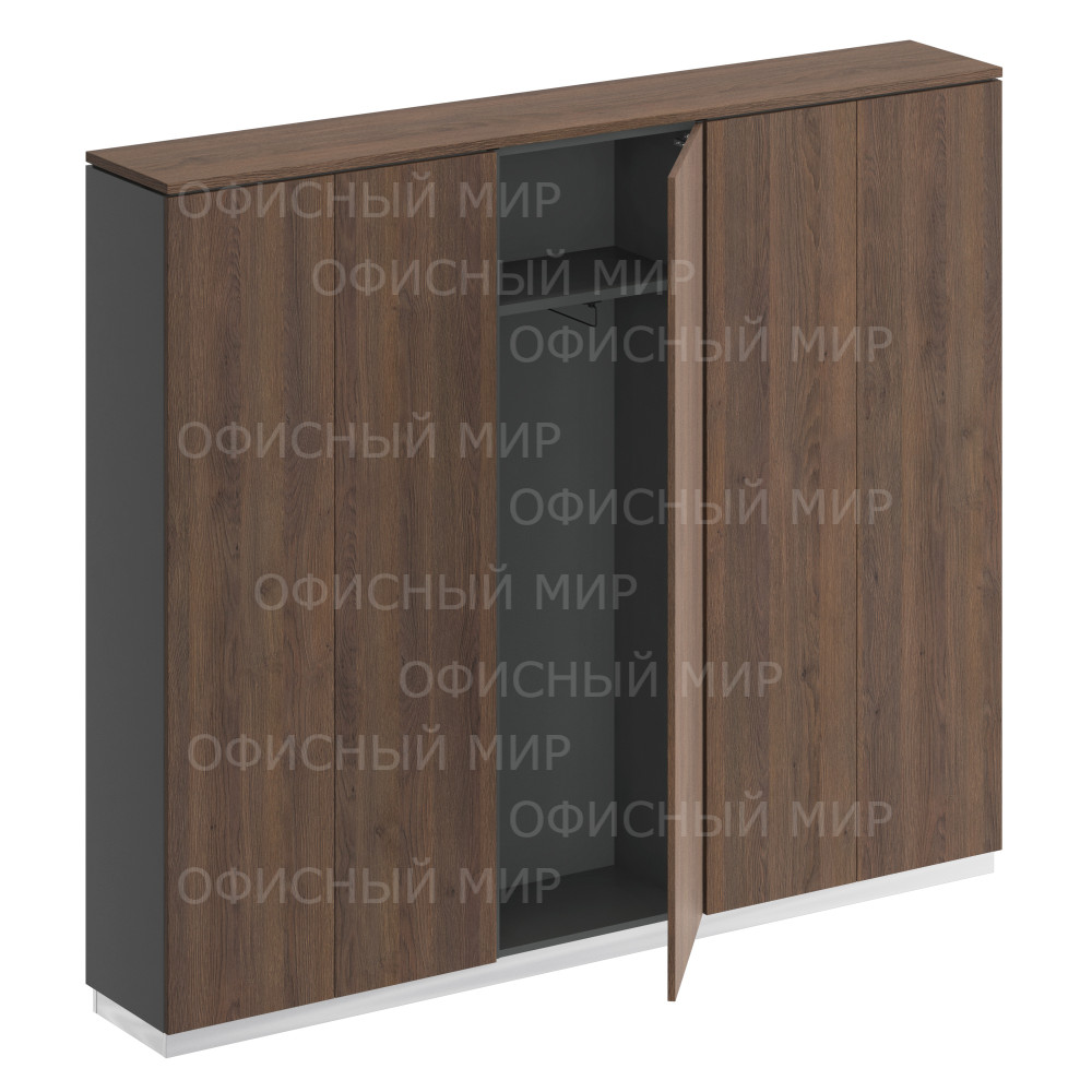 - Изделие является стенкой из двух закрытых шкафов для документов и узкого шкафа для одежды под общим топом.