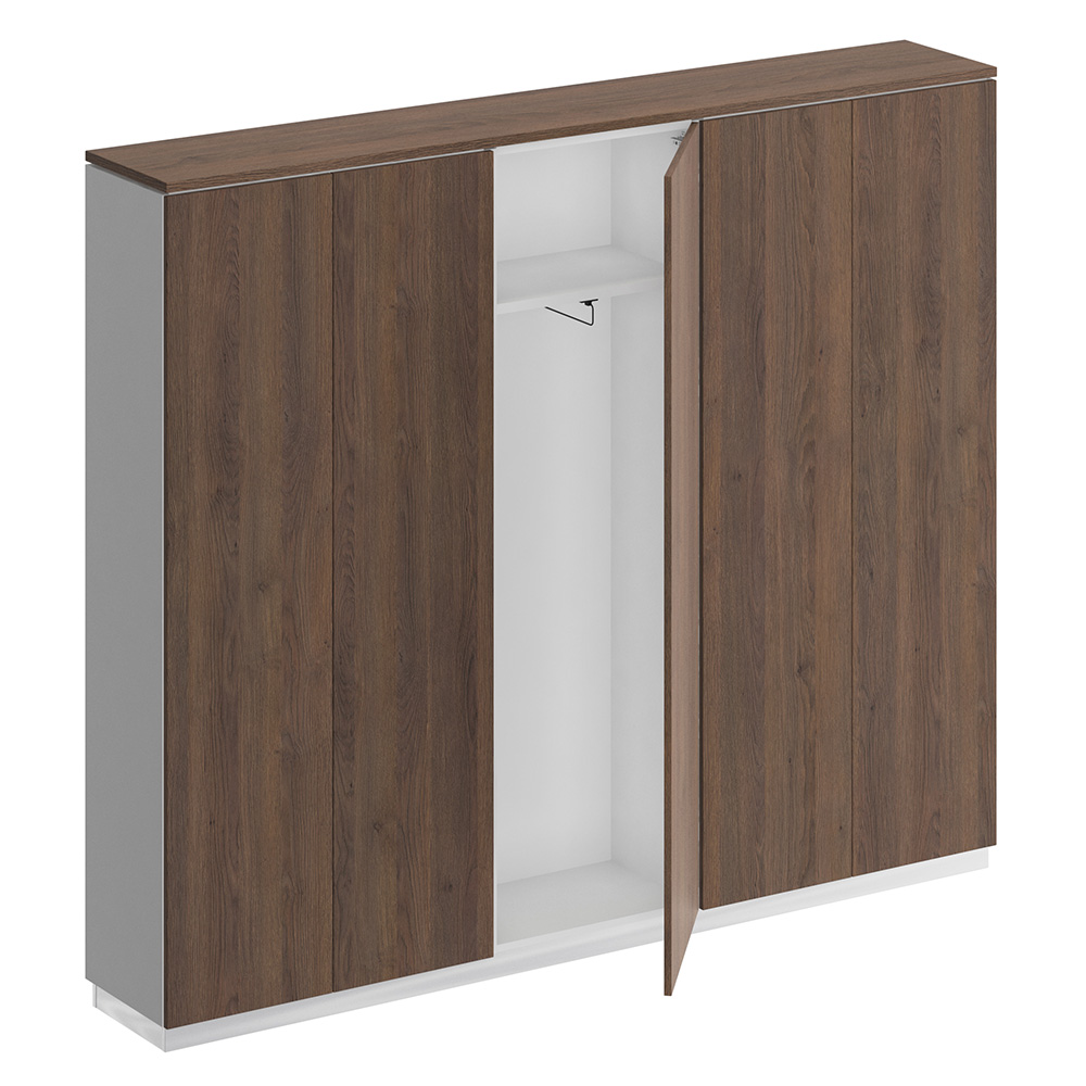 - Изделие является стенкой из двух закрытых шкафов для документов и узкого шкафа для одежды под общим топом.