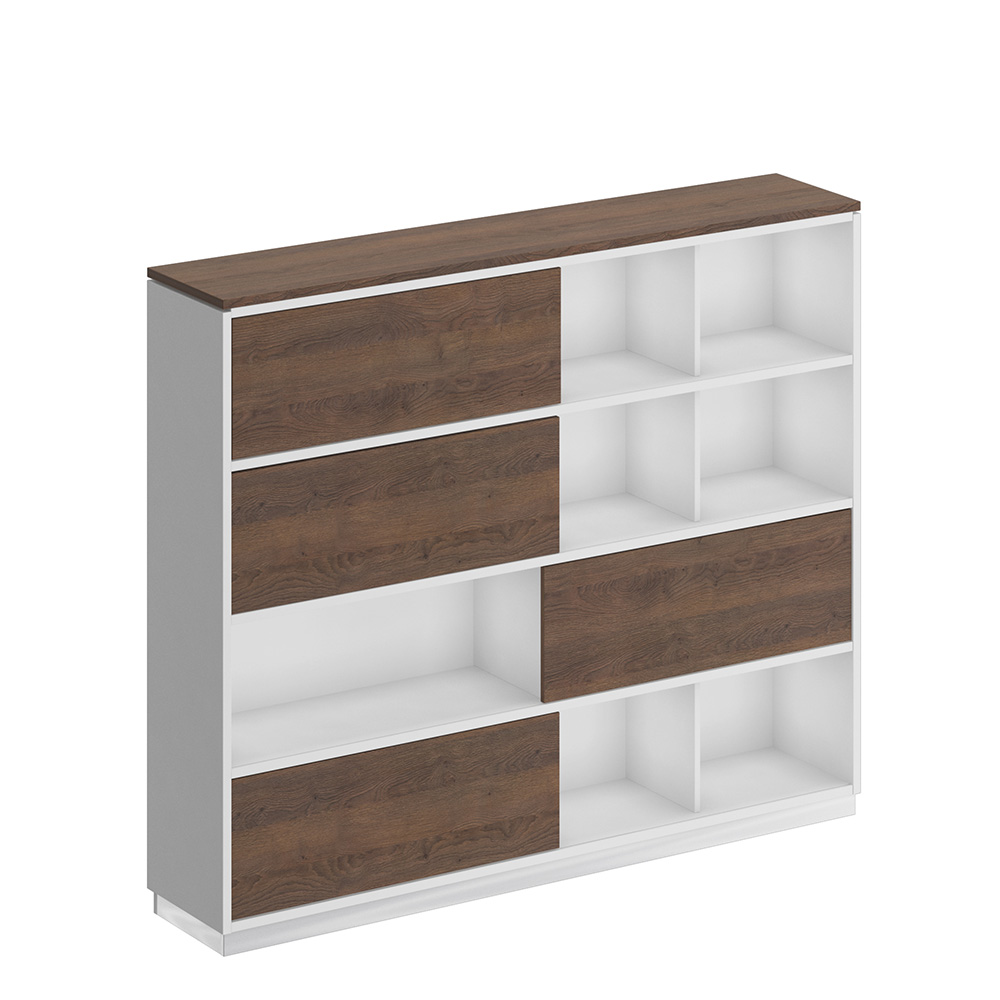 • Каркас шкафа состоит из 2-х секций для документов с 3-мя фиксированными по высоте полками в каждой секции.