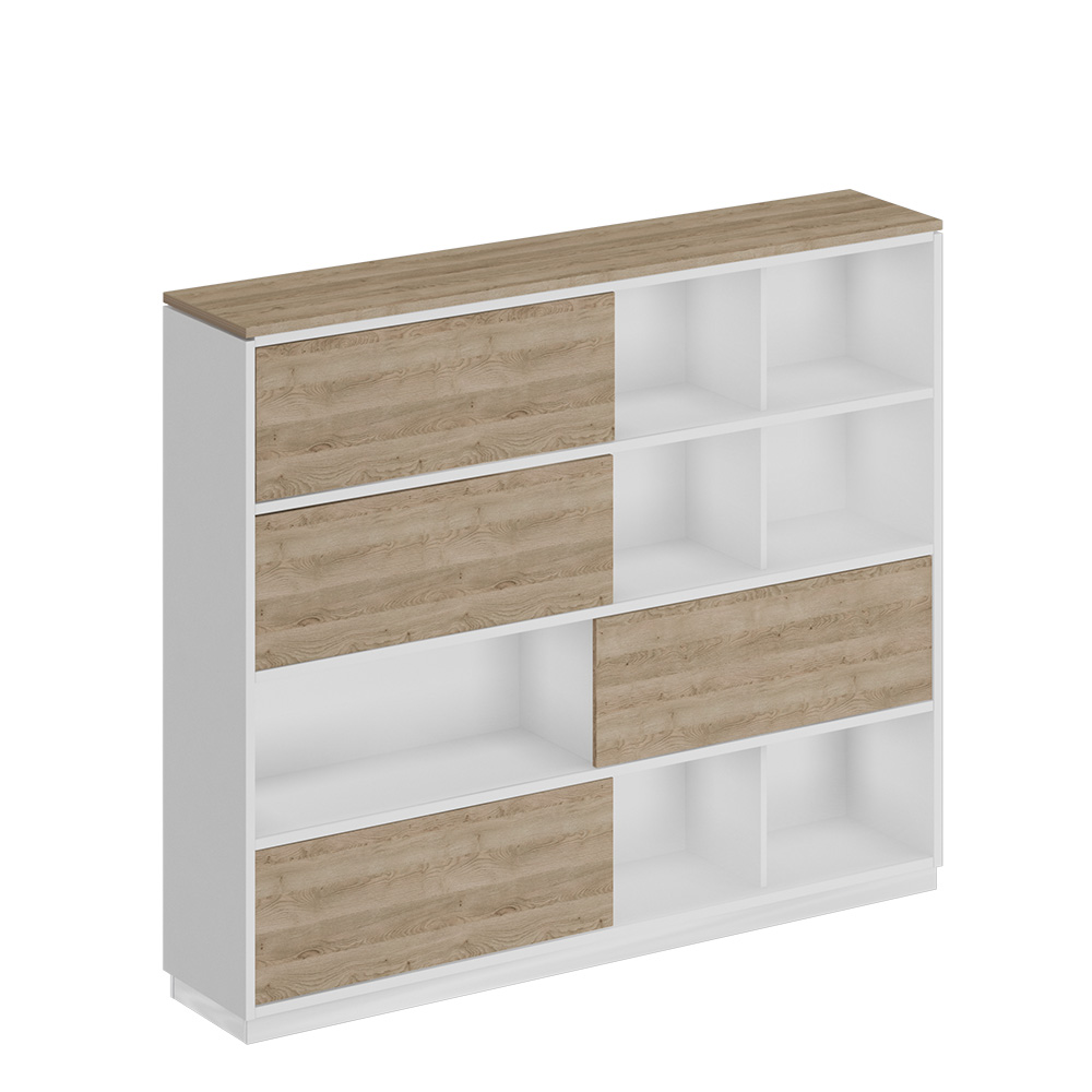 • Каркас шкафа состоит из 2-х секций для документов с 3-мя фиксированными по высоте полками в каждой секции.