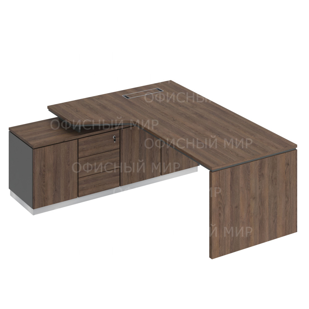 Стол на опорной тумбе левый эргономичный опора ДСП дуб гладстоун / антрацит премиум / дуб гладстоун СИ 117 ДГ АР ДГ