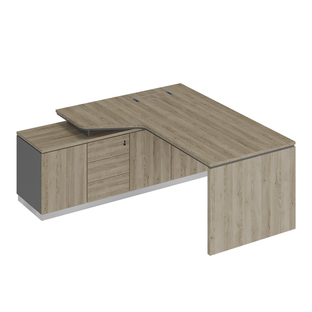 Стол на опорной тумбе левый эргономичный опора ДСП дуб гладстоун светлый / антрацит премиум / дуб гладстоун светлый СИ 117 ДС АР ДС