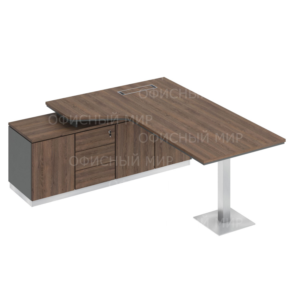 Стол руководителя эргономичный на опорной тумбе левый дуб гладстоун / антрацит премиум / дуб гладстоун СИ 113 ДГ АР ДГ