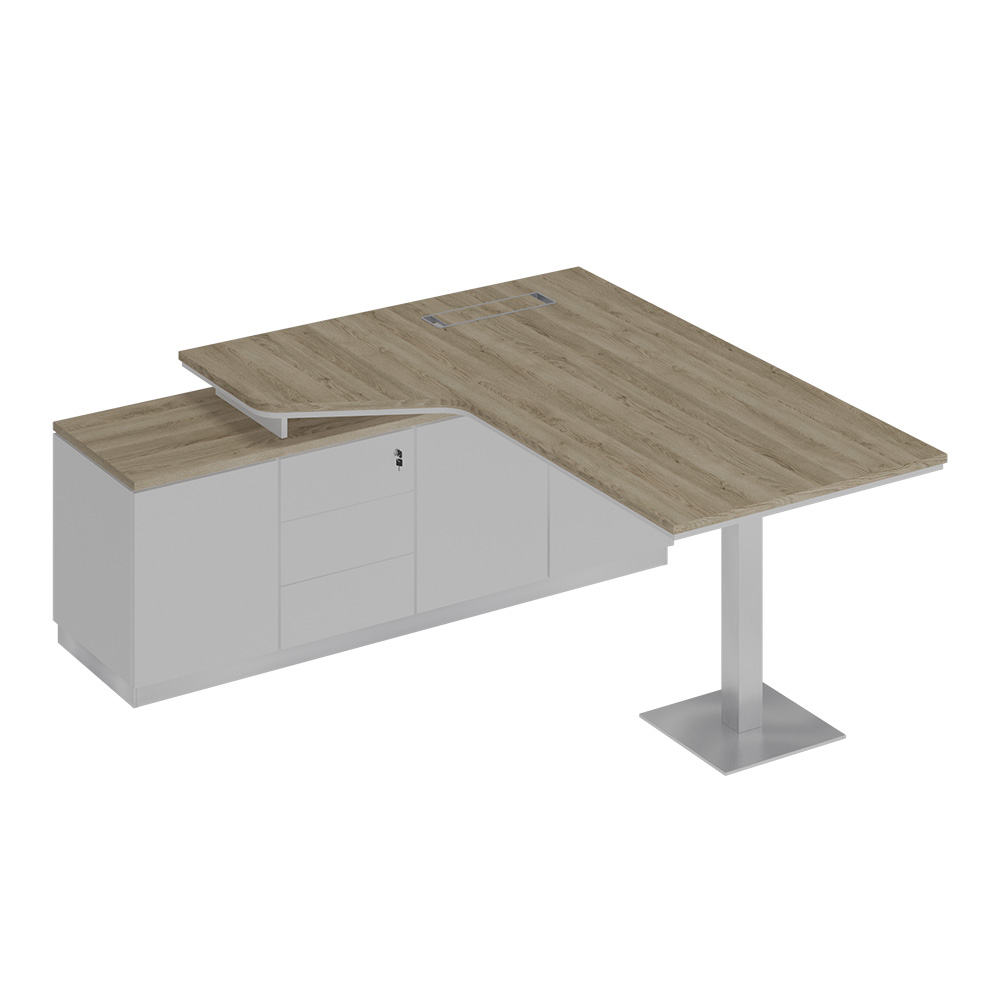 Стол руководителя эргономичный на опорной тумбе левый дуб гладстоун светлый / белый премиум / белый премиум СИ 113 ДС БП БП
