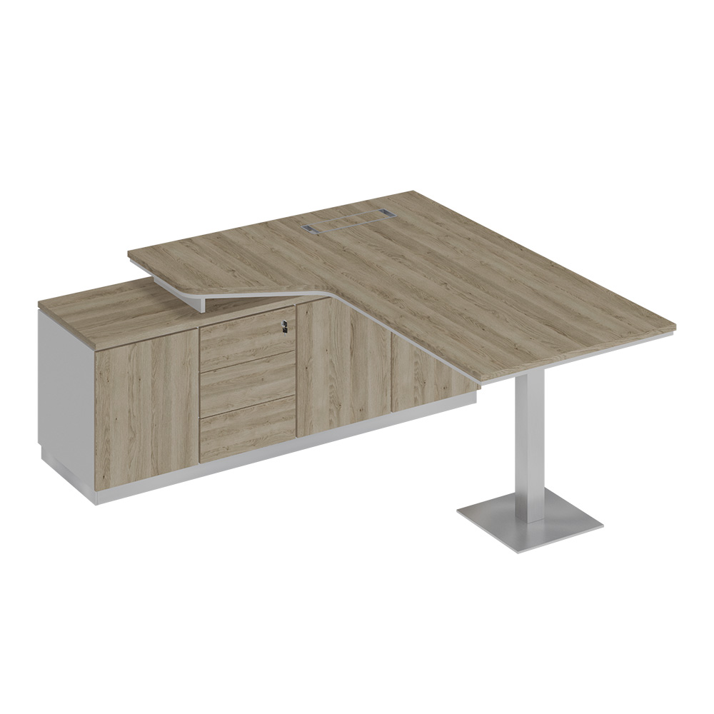 Стол руководителя эргономичный на опорной тумбе левый дуб гладстоун светлый / белый премиум / дуб гладстоун светлый СИ 113 ДС БП ДС
