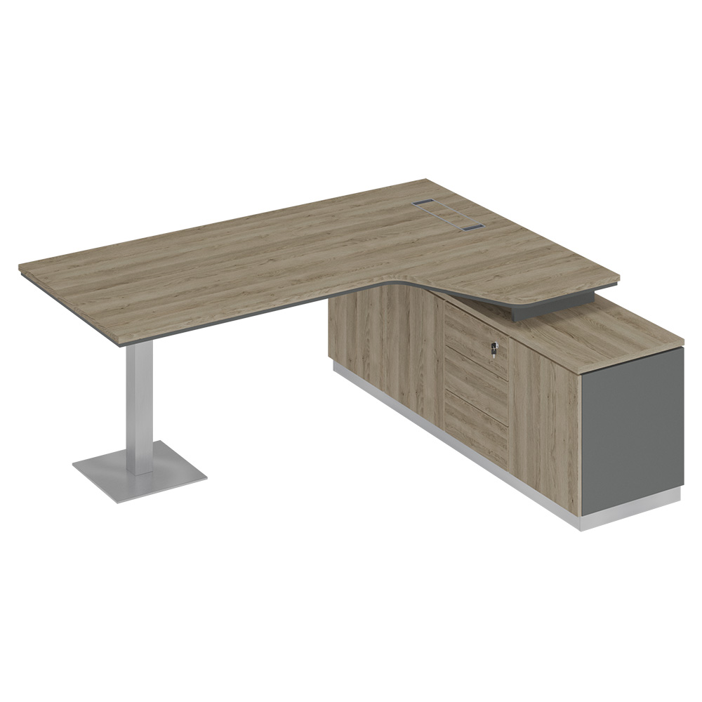 Стол руководителя эргономичный на опорной тумбе правый дуб гладстоун светлый / антрацит премиум / дуб гладстоун светлый СИ 116 ДС АР ДС