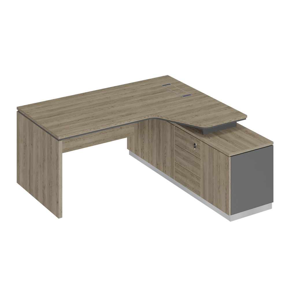 Стол руководителя эргономичный на опорной тумбе правый дуб гладстоун светлый / антрацит премиум / дуб гладстоун светлый СИ 118 ДС АР ДС