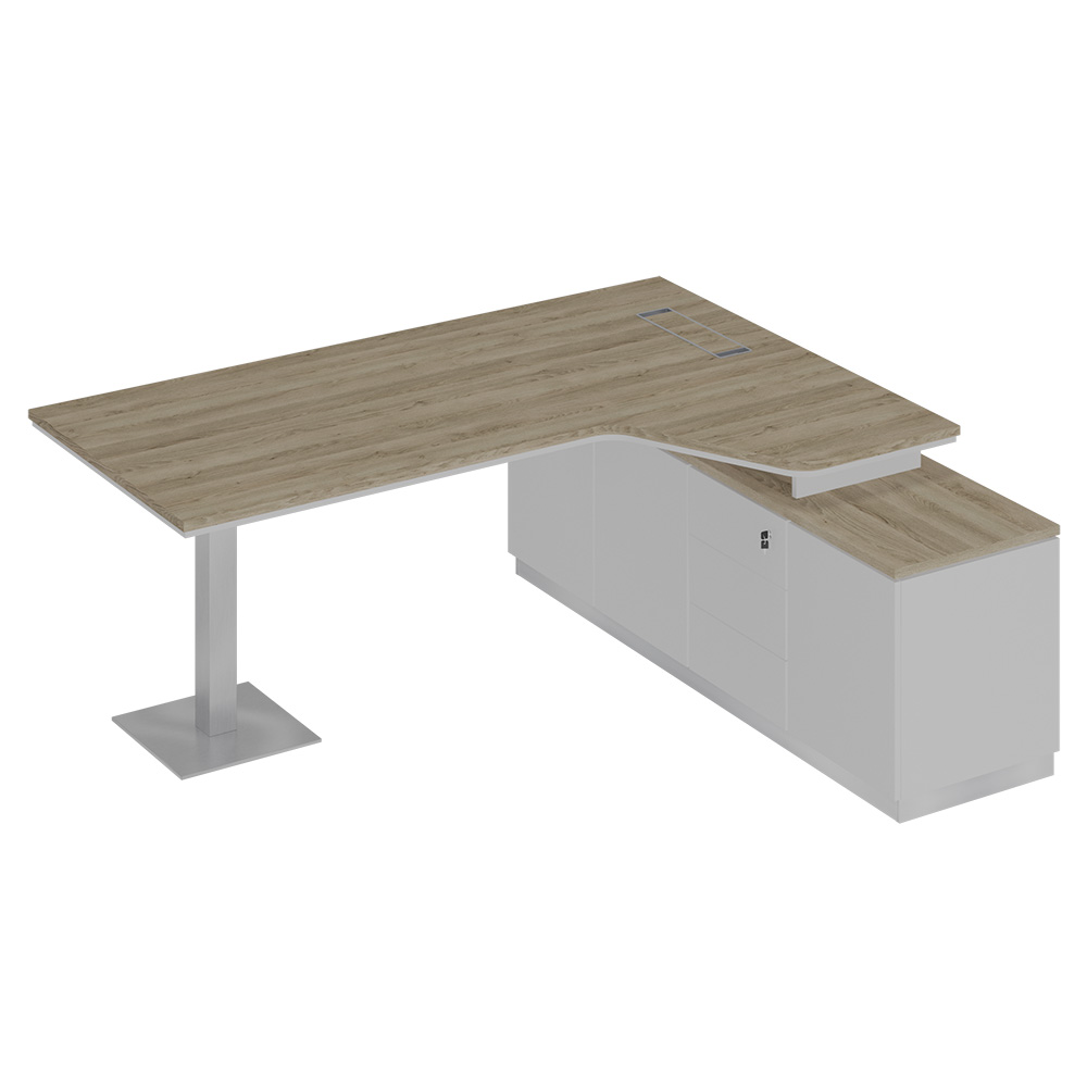 Стол руководителя эргономичный на опорной тумбе правый дуб гладстоун светлый / белый премиум / белый премиум СИ 116 ДС БП БП