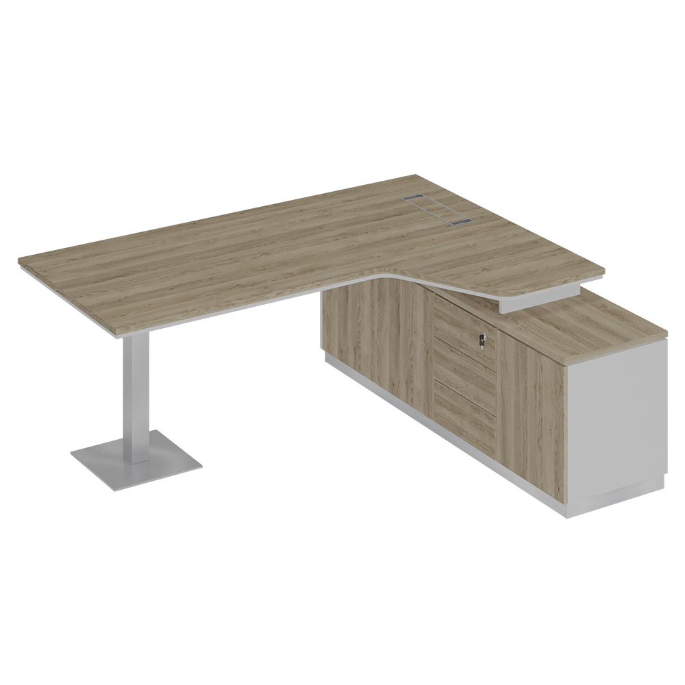 Стол руководителя эргономичный на опорной тумбе правый дуб гладстоун светлый / белый премиум / дуб гладстоун светлый СИ 116 ДС БП ДС