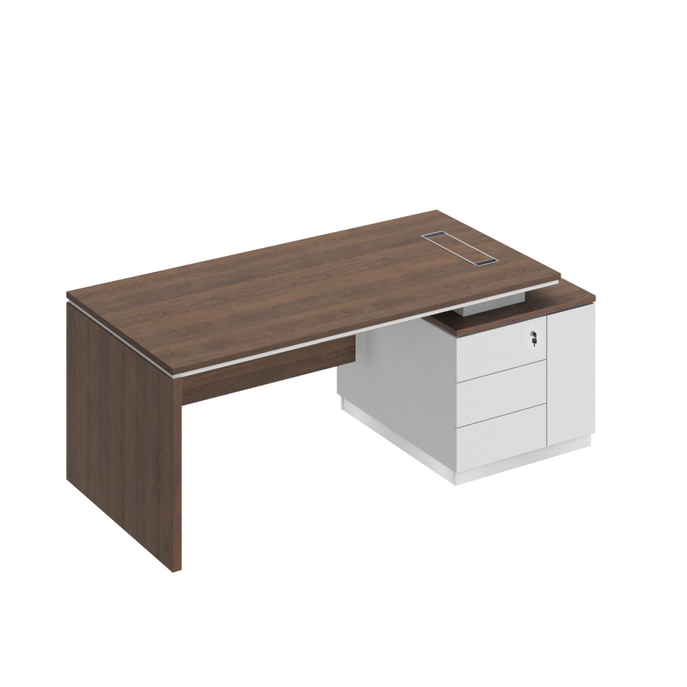 • Со стороны пользователя опорная тумба имеет 3 выдвижных ящика, установленных на скрытые шариковые направляющие с системой встроенного демпфирования и нишу под системный блок компьютера со скрытым размещением проводки, укомплектованную распашной дверью с системой открывания Push Up (без ручек).