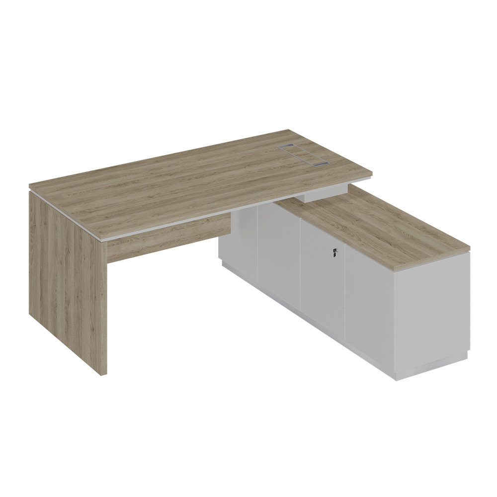 Стол руководителя (опора ДСП) на опорной тумбе дуб гладстоун светлый / белый премиум / белый премиум СИ 107 ДС БП БП