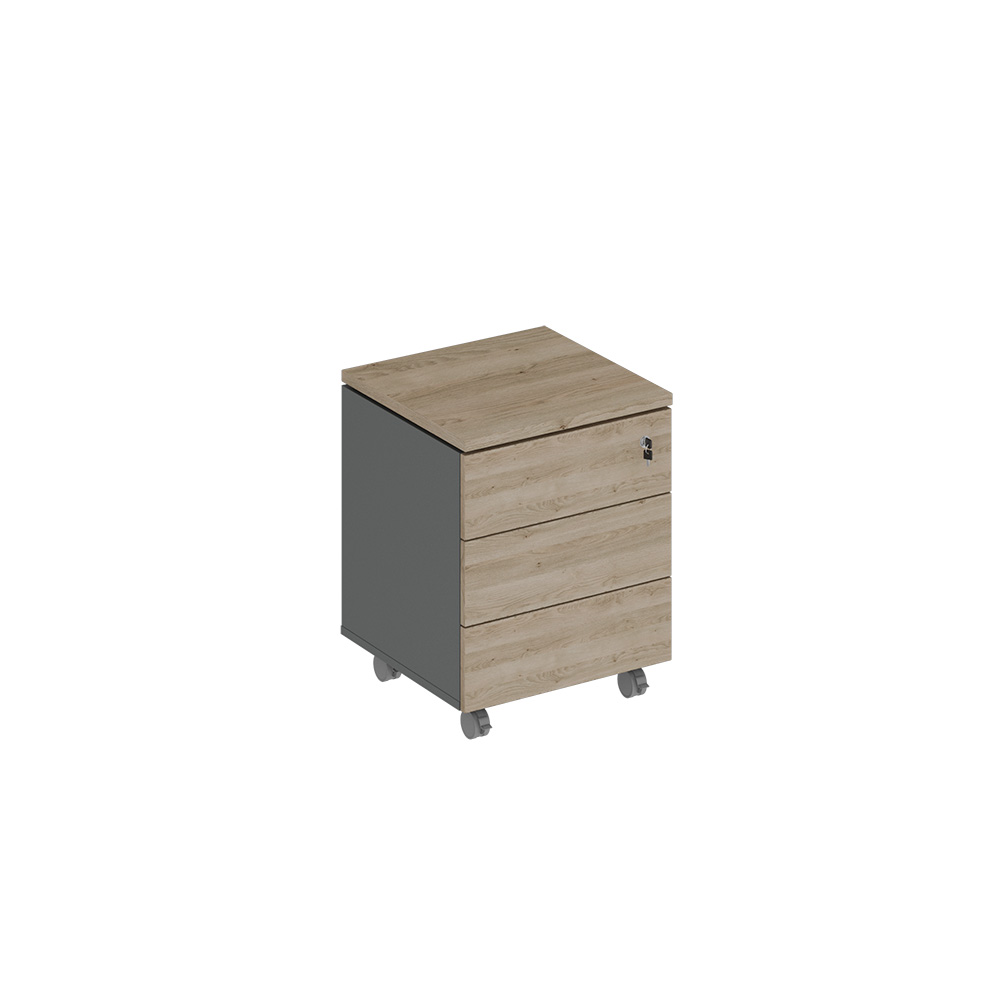 Тумба выкатная 3-ящичная с замком дуб гладстоун светлый / антрацит премиум / дуб гладстоун светлый СИ 213 ДС АР ДС
