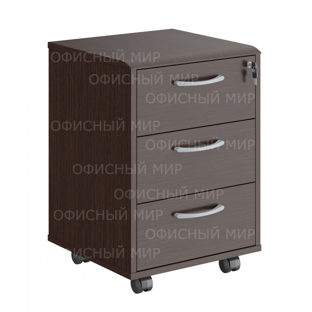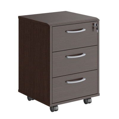 Универсальная мобильная тумба DIONI для офисного или домашнего использования. Размеры - 465х664х450 мм, цвет - Венге Магия. Количество ящиков - 3. Ящики тумбы оснащены центральным замком и декорированы стильными металлическими ручками. Конструкция тумбы оснащена прочными силовыми креплениями – эксцентриковыми стяжками. Надежная защита всех элементов из ЛДСП – кромка ПВХ. Удобные колесики с плавным ходом.