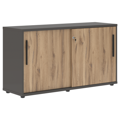 Шкаф низкий с дверьми ELC 1343 Дуб Денвер светлый/Черный/Мокко 1346х430х750 EDIS