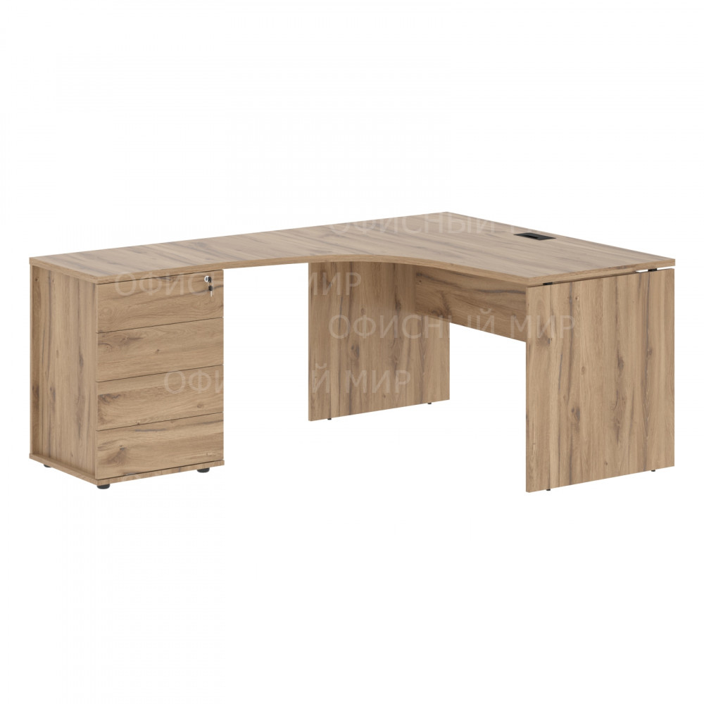 Стол эргономичный с тумбой EDCET 1318(L) Дуб Денвер светлый/Черный 1360х1880х750 EDIS