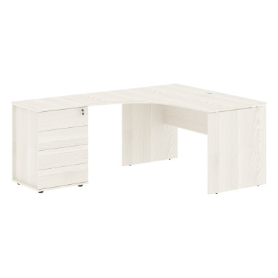 Стол эргономичный с тумбой EDCET 1318(L) Ясень Траун/Белый 1360х1880х750 EDIS