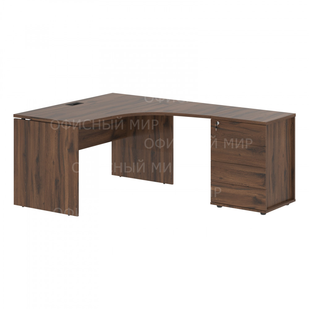 Стол эргономичный с тумбой EDCET 1318(R) Дуб Денвер тёмный/Черный 1360х1880х750 EDIS