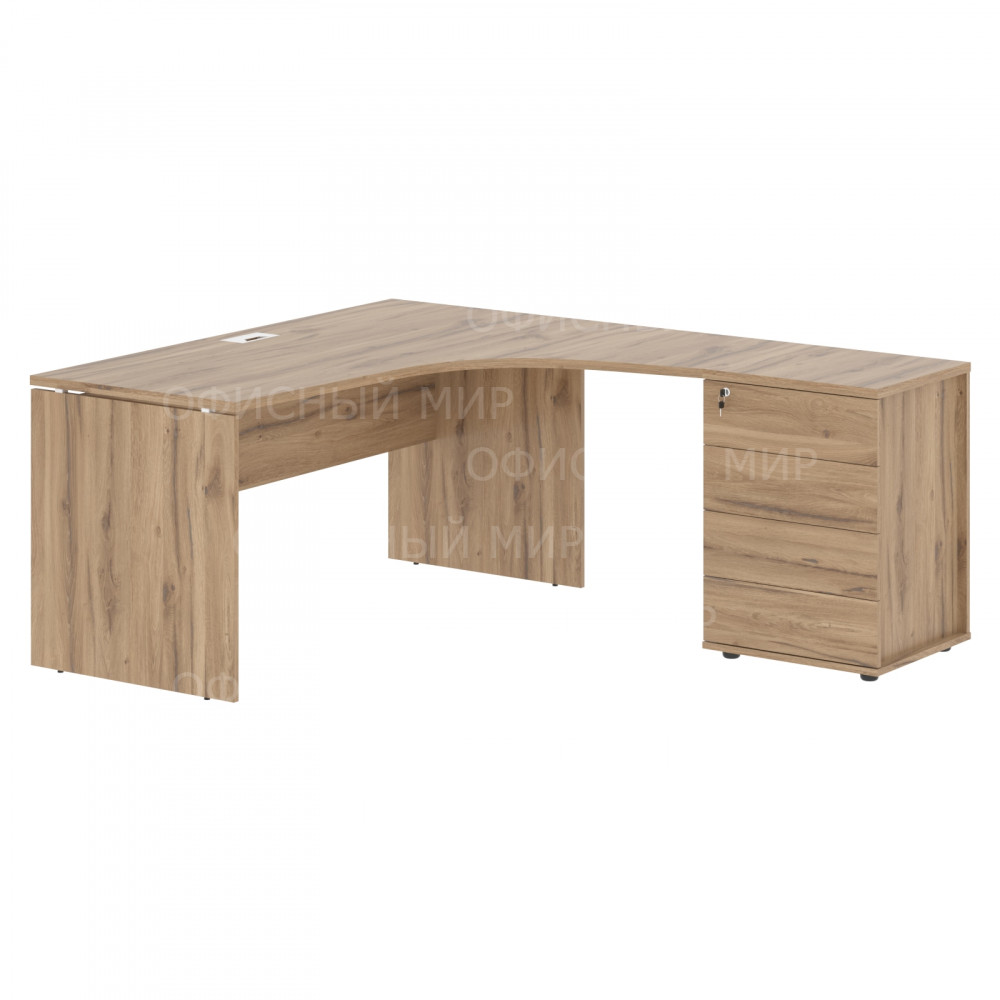 Стол эргономичный с тумбой EDCET 1518(R) Дуб Денвер светлый/Белый 1560х1880х750 EDIS