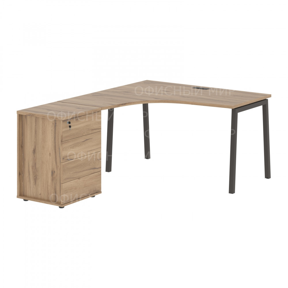 Стол эргономичный с тумбой ELCET 1318(L) Дуб Денвер светлый/Мокко 1360х1880х750 EDIS