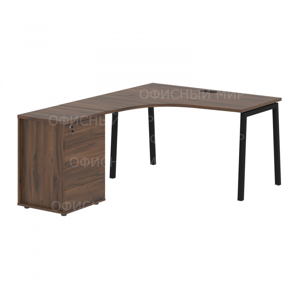 Стол эргономичный с тумбой ELCET 1318(L) Дуб Денвер тёмный/Черный 1360х1880х750 EDIS