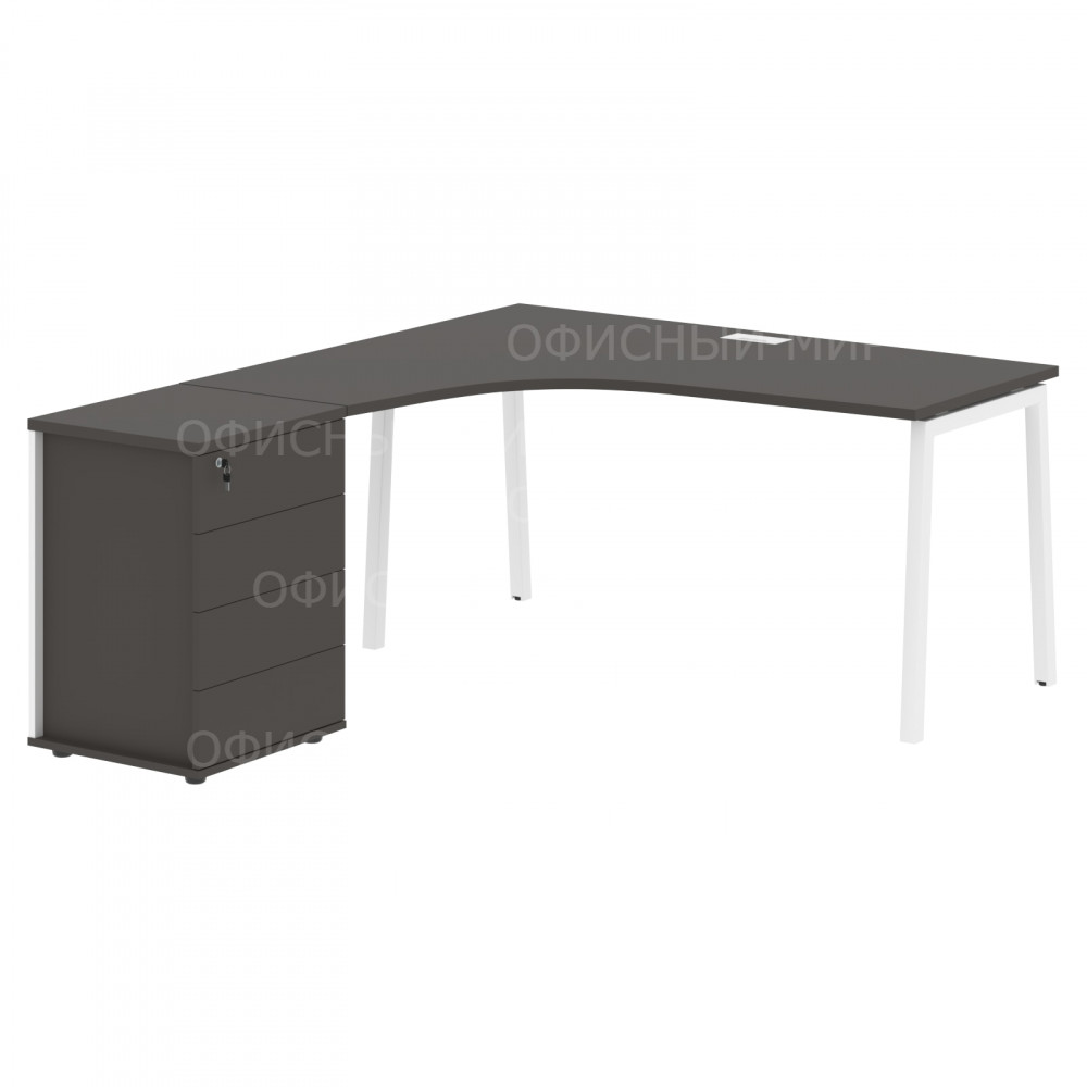 Стол эргономичный с тумбой EQCET 1518(L) Мокко/Белый 1560х1880х750 EDIS