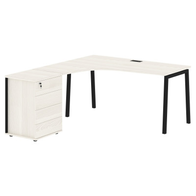 Стол эргономичный с тумбой ELCET 1518(L) Ясень Траун/Черный 1560х1880х750 EDIS