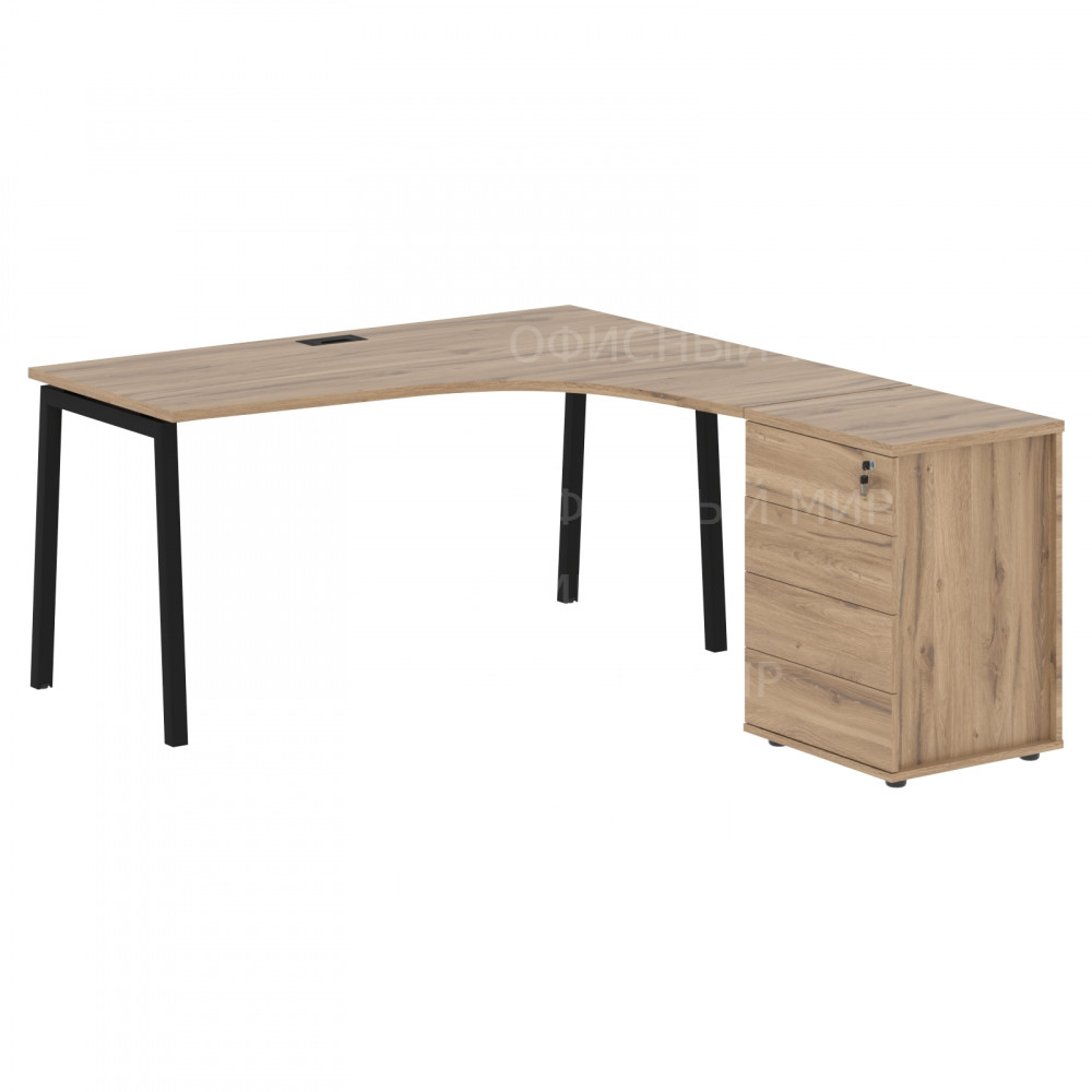 Стол эргономичный с тумбой ELCET 1518(R) Дуб Денвер светлый/Черный 1560х1880х750 EDIS