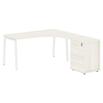 Стол эргономичный с тумбой ELCET 1518(R) Ясень Траун/Белый 1560х1880х750 EDIS