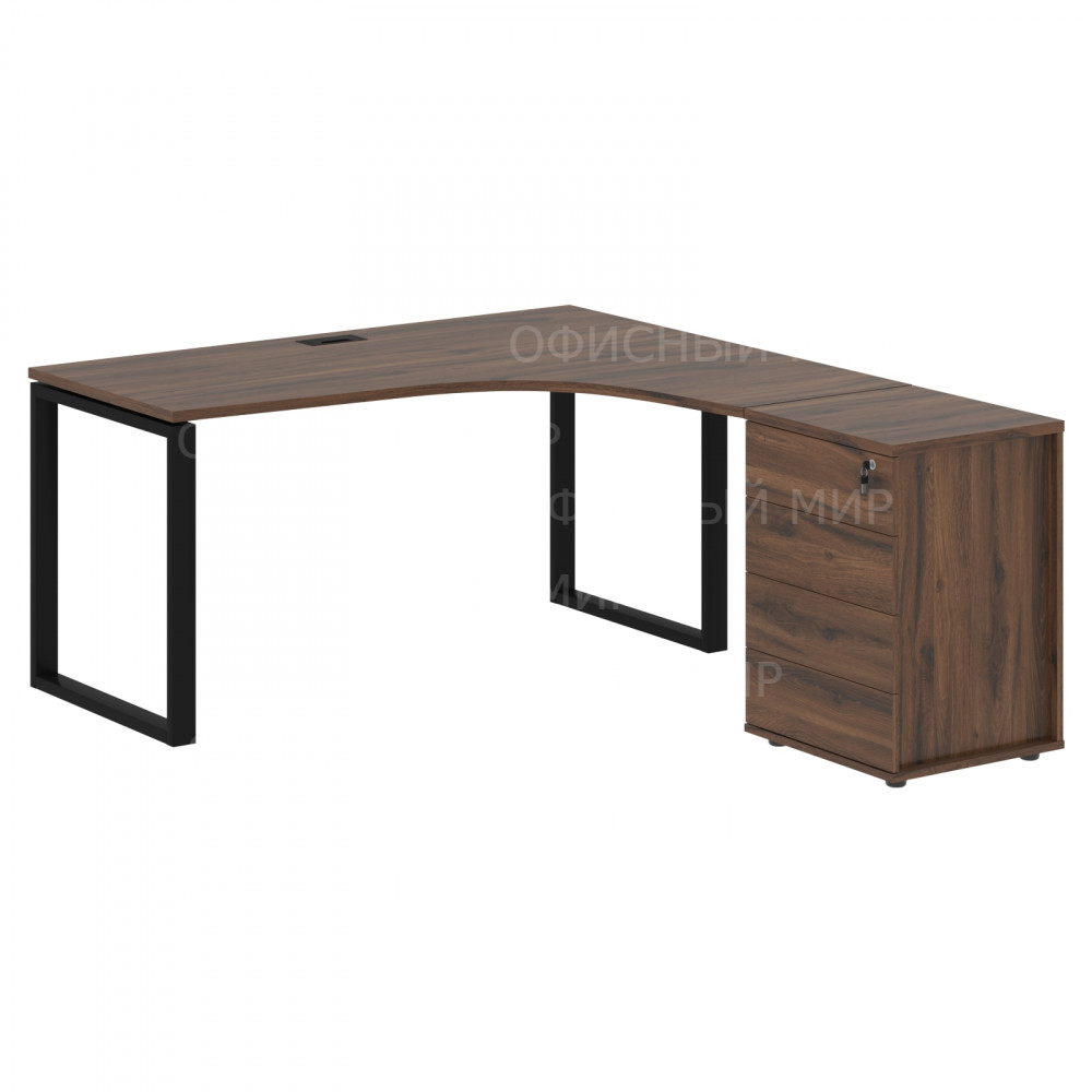 Стол эргономичный с тумбой EQCET 1518(R) Дуб Денвер тёмный/Черный 1560х1880х750 EDIS
