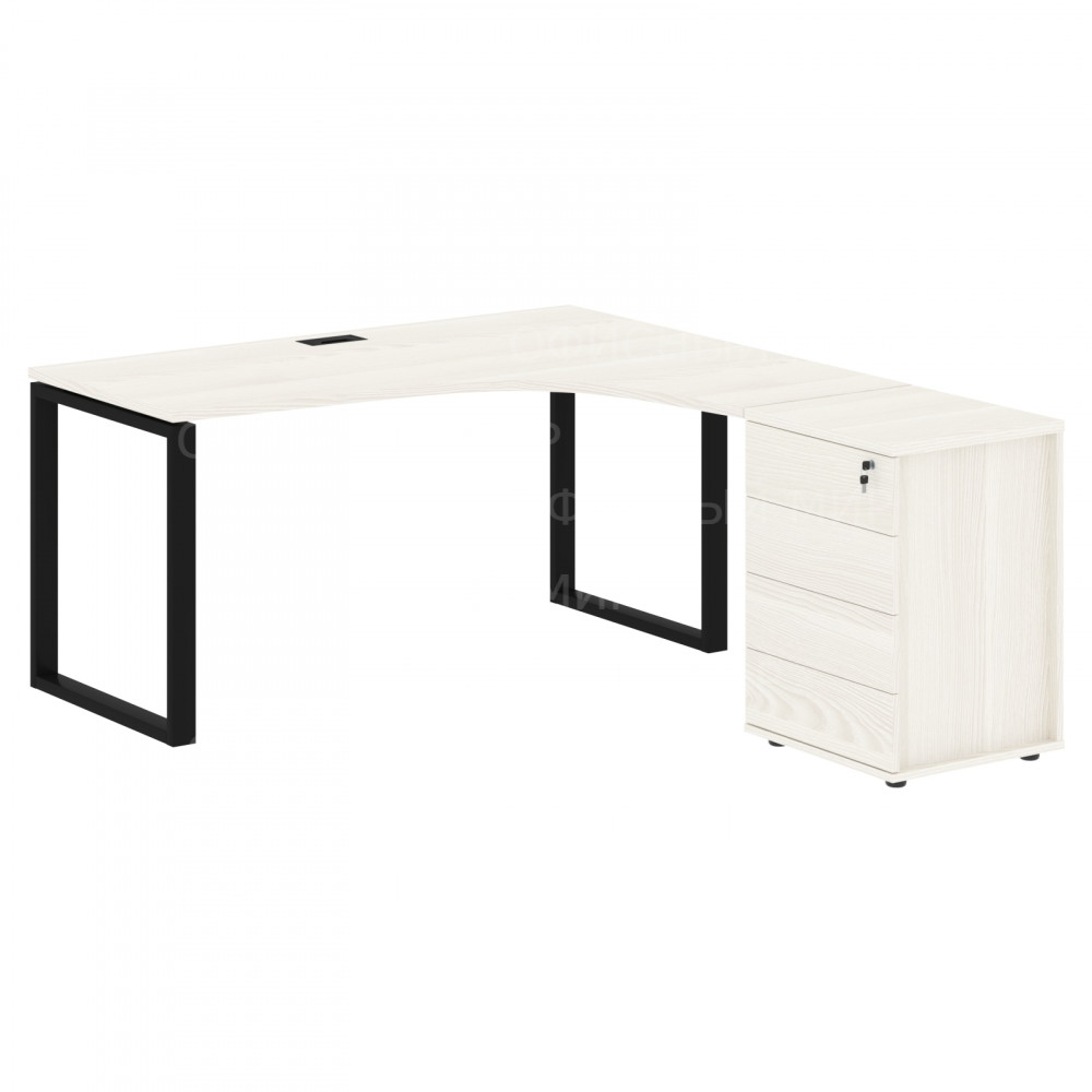 Стол эргономичный с тумбой EQCET 1518(R) Ясень Траун/Черный 1560х1880х750 EDIS