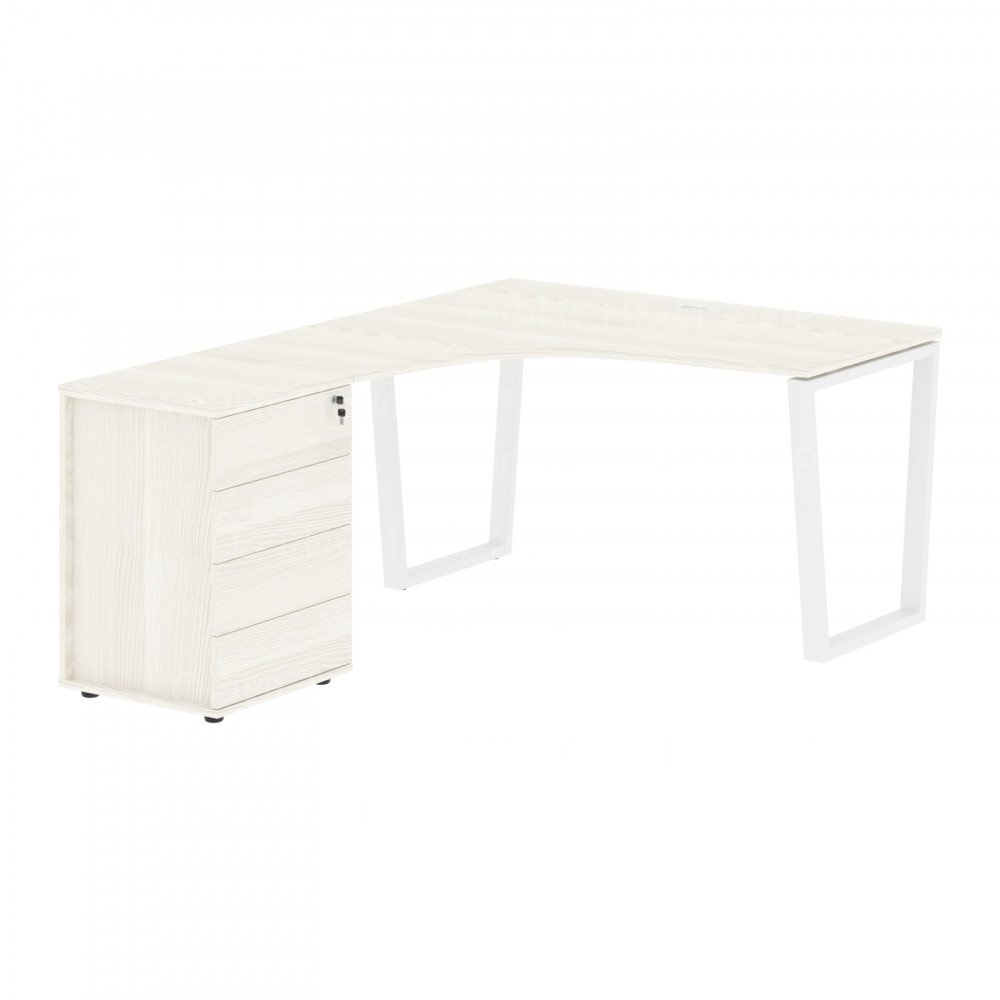 Стол эргономичный с тумбой EVCET 1318(L) Ясень Траун/Белый 1360х1880х750 EDIS