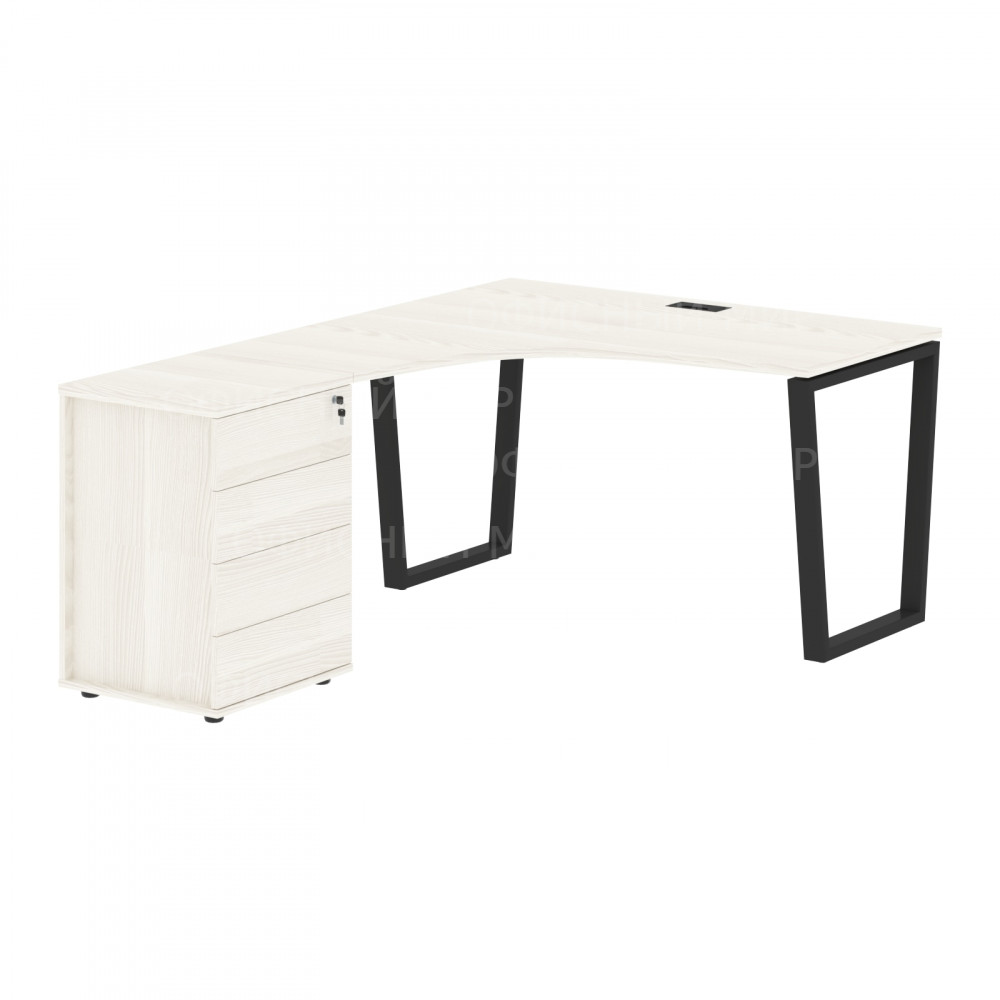 Стол эргономичный с тумбой EVCET 1318(L) Ясень Траун/Черный 1360х1880х750 EDIS